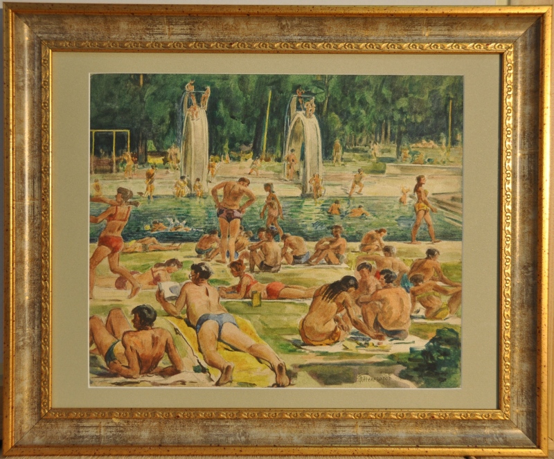| Картоиграчи в парка I, гваш, 31/39 см, 2000 лв. |