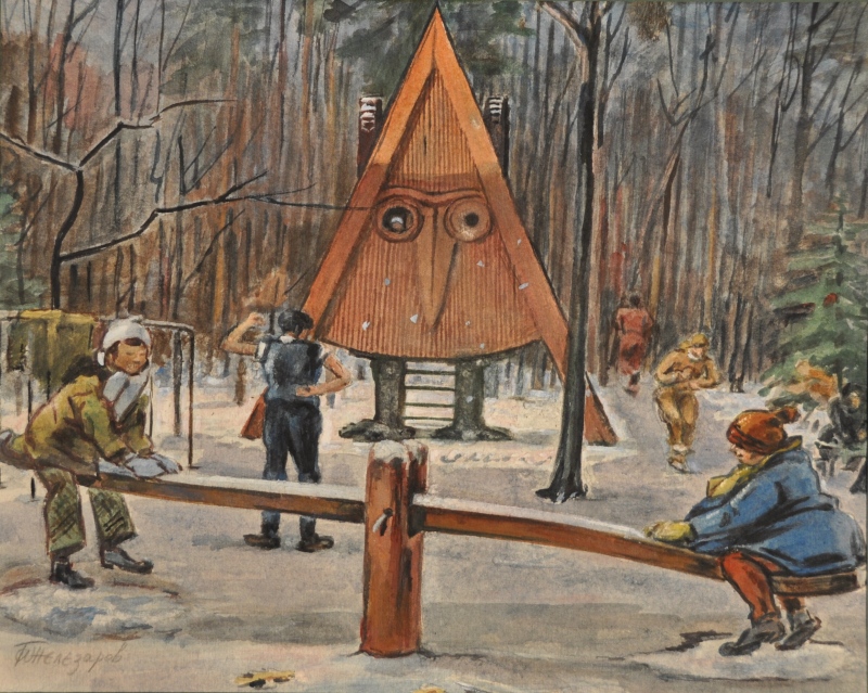 | Деца в Ловния парк, гваш, 39/31,5 см |